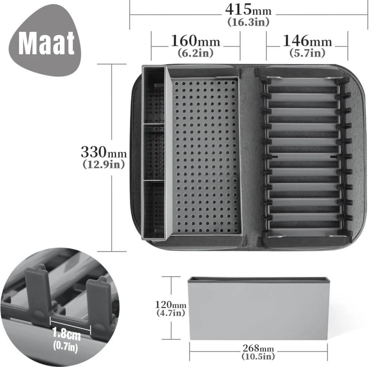 Ons afdruiprek is gemaakt van hoogwaardig en duurzaam materiaal, zodat u er zeker van kunt zijn dat het lang meegaat. De opvouwbare functie maakt het gemakkelijk om op te bergen als het niet in gebruik is, wat betekent dat u geen ruimte in uw keuken hoeft te verliezen. Dit maakt ons opvouwbare afdruiprek de perfecte keuze voor kleine appartementen of keukens met beperkte ruimte. Maar ook in gebruik voor grote ruimtes.