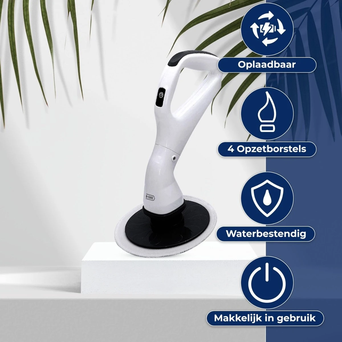 Een schoon forhuis, gootsteen, douchecabine, autovelgen of voegen tussen de badkamer tegels. Niks is te gek voor de B-care Elektrische Multifunctionele Schoonmaakborstel. De reinigingsborstelkop draait 360 graden, met hoge rotatiesnelheid, de schrobber blaast schimmel, meeldauw en roet in een oogwenk weg, zonder het gebruik van agressieve chemische middelen. Met de 4 verschillende opzetstukken kunt u iedere kier scrobben en heeft u altijd de juiste borstel voor een ondergrond. De borstel is draadloos en kan worden opgeladen met bijgeleverde oplader. Zo kan u poetsen waar en wanneer u maar wil!