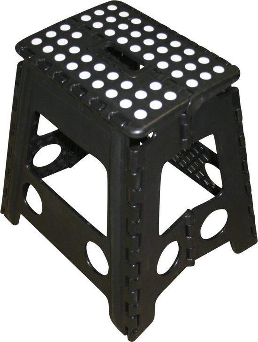 Handig opvouwbare kruk. Is volledig opvouwbaar wat hem makkelijk weg te zetten maakt. De kruk is zwart met wit en kan een maximaal gewicht dragen van 120 kg. Let op! Niet om op te staan.