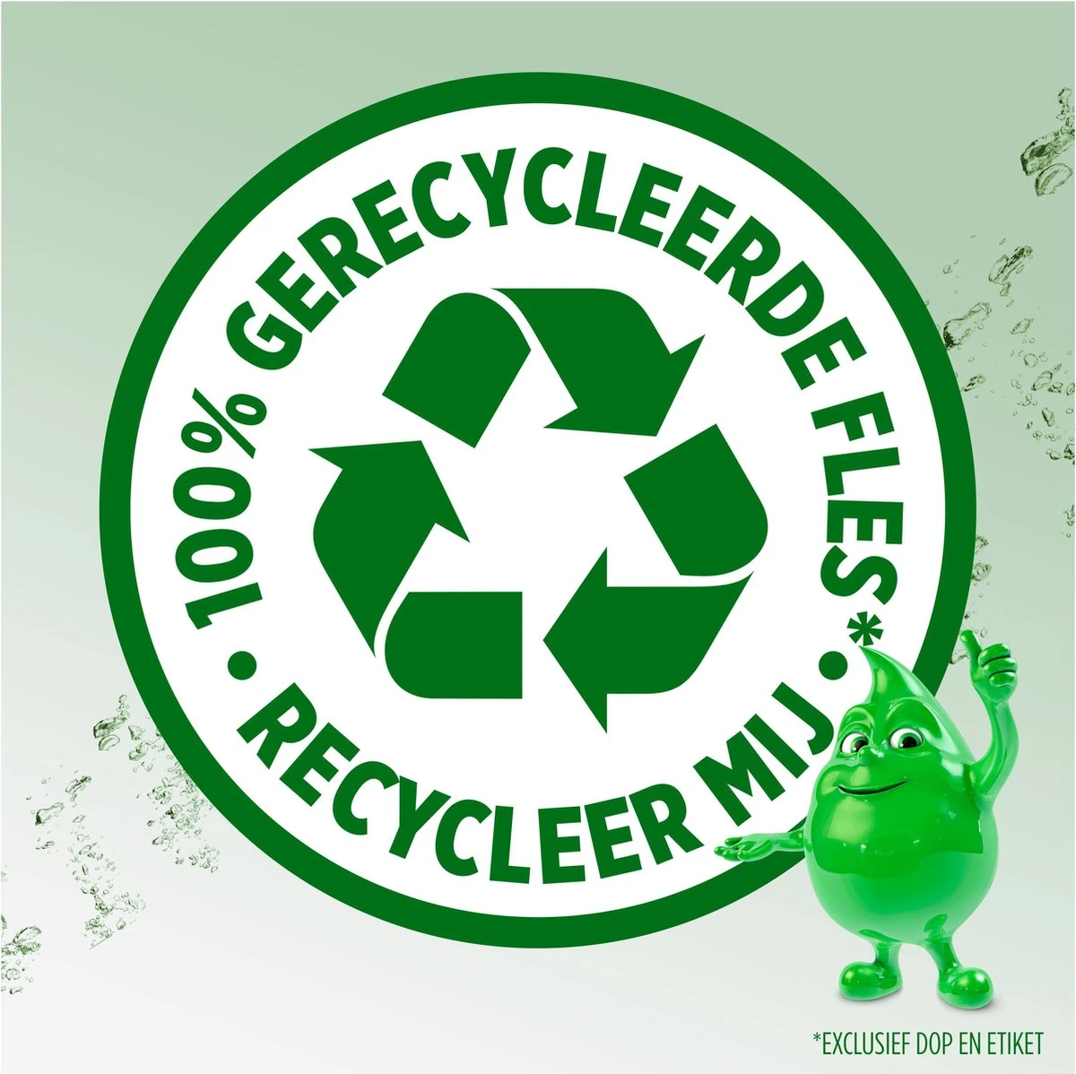 - GERECYCLEERDE EN RECYCLEERBARE FLES: onze flessen worden gemaakt van 100% gerecycleerd plastic (behalve dop en etiket)