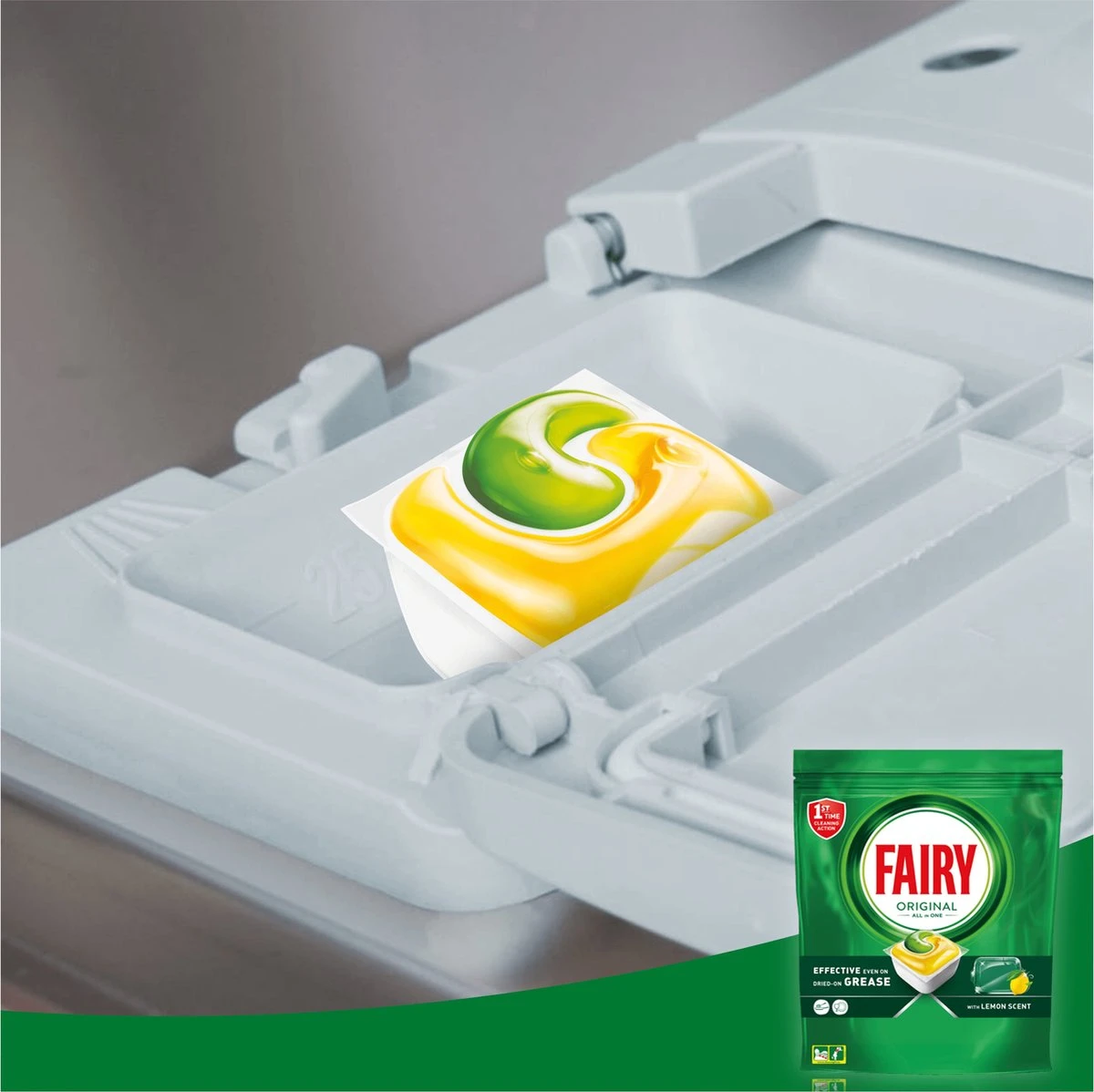 Dreft Original All in One vaatwascapsules leveren direct een grondige reinigingsactie en zijn zelfs effectief op aangekoekt vet, voor een sprankelend schone vaat. Dreft combineert vloeistof en poeder in één krachtige capsule. Het ultra-oplosbare zakje lost snel op, zodat het snel begint te reinigen om de klus klaar te krijgen. En ze zijn gemakkelijk te gebruiken. Plaats ze gewoon in het doseerbakje van je vaatwasser, met verpakking.