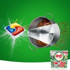 Dreft Platinum vaatwastabletten verwijderen vet en vuil en zorgen voor een stralend schone vaat én vaatwasser, op ieder programma.