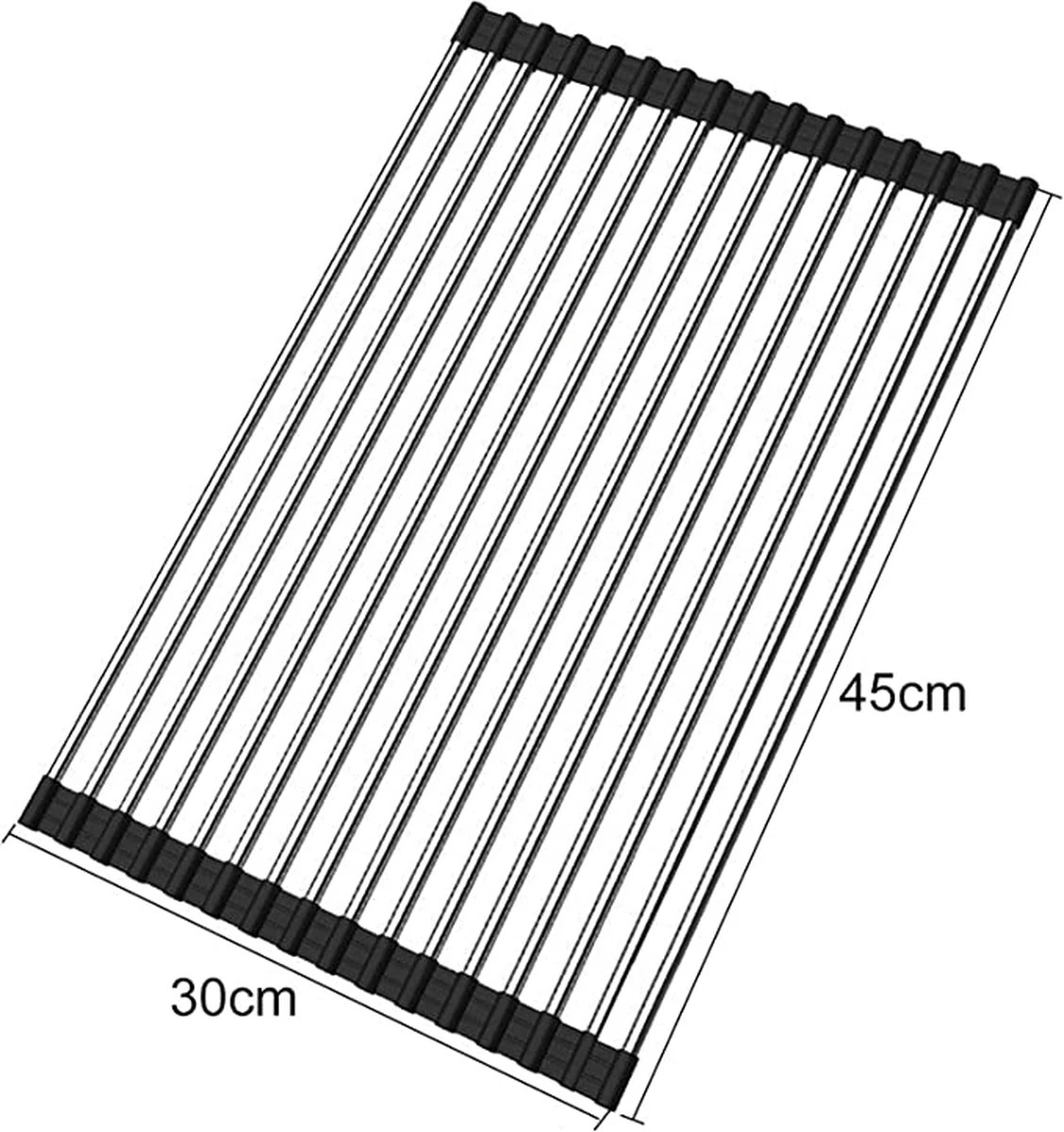 Leg het afdruiprek simpelweg over je gootsteen. De antislip siliconen zorgt ervoor dat jij je geen druk moet maken dat alles van je aanrecht zou vallen. Bovendien is deze BPA vrij. De Oppervlakte is gemaakt uit RVS Roestvrij staal. Dit wil zeggen dat deze tot 20 kg gewicht aan kan.