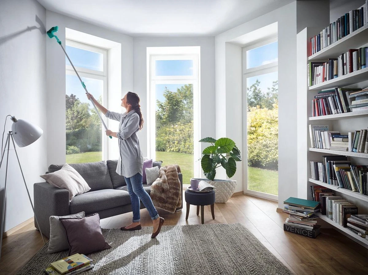 De telescoopsteel aluminium 145-400 cm van Leifheit is met zijn Clicksysteem voor verschillende reinigingsapparaten geschikt. Eenvoudig de reinigingskop verwisselen, vastklikken en klaar voor gebruik. De steel kan van 145 tot 400 cm uitgetrokken worden. Op deze manier kunnen ook muren en plafonds tot 4 meter hoogte zonder ladder gereinigd worden. Met anti-sliphandvat en ophangoog, welke 360° gedraaid kan worden. 2 jaar garantie.
