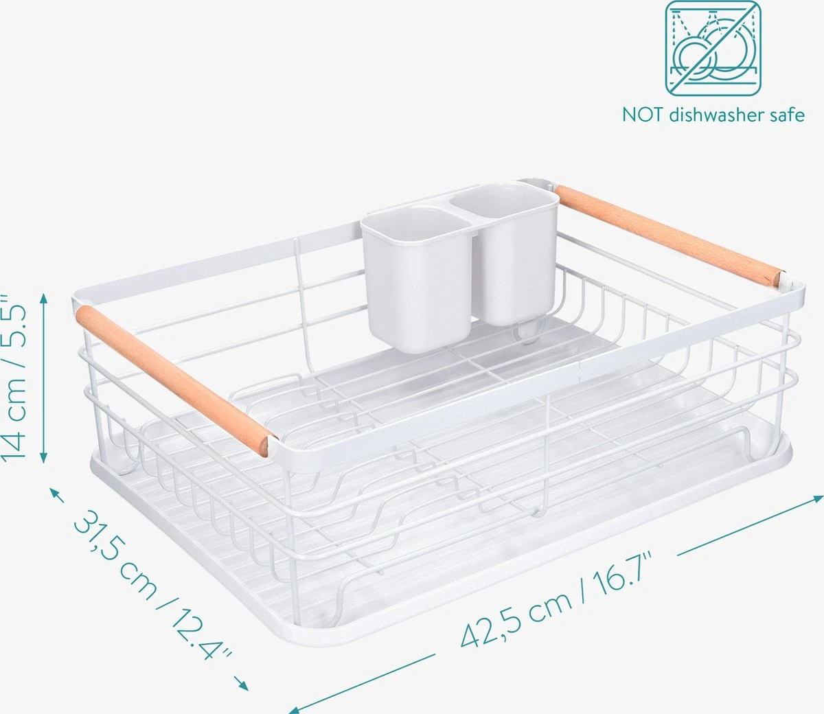 - MODERN DESIGN: Dit afdruiprek is een blikvanger voor elke keuken. Met het Scandinavische design en houten handvatten zal het zeker niet misstaan.