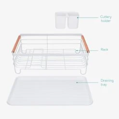 Afdrogen was nog nooit zo makkelijk met dit afdruiprek van Navaris. De set bestaat uit een afdruiprek, afneembare bestekhouder en een lekbak.