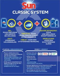- Gebruik in combinatie met Sun Classic Vaatwastabletten of Sun Poeder